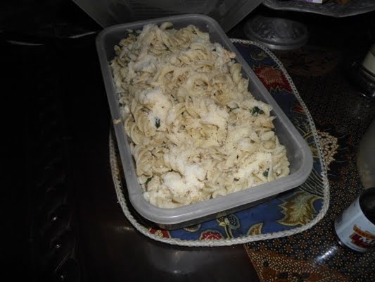 Jadi pada bbm itu gue nanya resep pasta yang orisinil Italia banget. Intinya,kata kakak ipar gue, konsep chicken carbonara pasta itu bawang yang ditumis sama lada hitam, ayam atau smoked beef, minyaknya olive oil dong, trus pastanya yang masih abis direbus panas-panas dimasukin kesitu diaduk sambil ditambahkan kocokan telur, keju parmesan dan lada hitam. Sebenernya keju parmesannya boleh diganti pake keju cheddar, soalnya di Indonesia harga keju parmesan lumayan mahal, seperempat kilo aja bisa nyame 70rebu yang bubuk. Tapi emang rasanya beda, lebih enak dan gurihan pake keju parmesan. Trus kalo milih telur yang dari ayam petelur aja, kalo dari telur ayam kampung, apalagi yang beli di supermarket suka ga bagus telurnya, ada beberapa yang udah ada embrionya, hiiii... jijay... kecuali kalo ada jaminan kalo telur ayam kampung itu bener-bener fresh diambil dari yang baru dikeluarin induknya. Selain itu, telur ayam kampung lebih lama matengnya dibanding telur ayam petelur.
