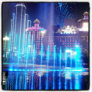 Setelah sesorean menjelajahi kawasan sejarah di sekitar Senado Square, kami malamnya jalan ke kawasan Lisboa yang tadi saya bilang 10 menit bisa dengan naik bus, tapi kamu memilih jalan, heu... 20 menit saja. Kawasan casino di Lisboa di malam hari oh sungguh spektakuler pemirsah.