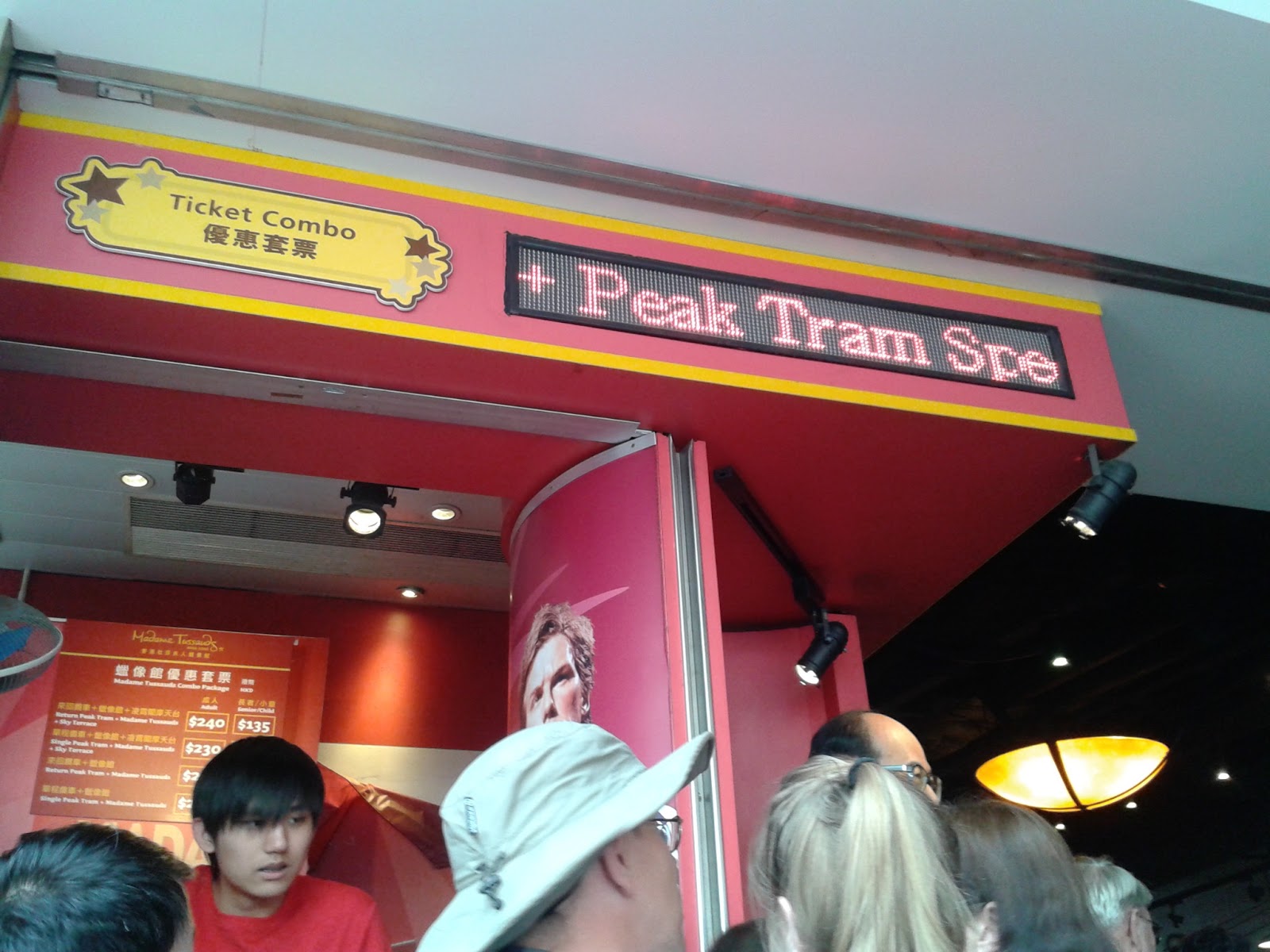 Menuju MMT kami naik Peak Tram. Untuk naik peak tram, masuk MMT, dan ke The Peak ini kami sudah beli tiket combo dulu via online di www.madametussauds.com, karena kalau beli di tempat jatuhnya lebih mahal. Di Peak Tram ini kita bisa merasakan gimana naik bukit menuju Madama Tussauds Museum dan Victoria Peak pake kereta dengan kemiringan 45 derajat. Gila ini kereta tahun 1950-an kuat juga nariknya. Sampai di MMT, kami foto-foto bentar, tapi sayang sekali, mau foto sama patung Jackie Chan musti bayar lagi�